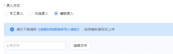 下载模板《差额扣除额清单导入模板》,按照模板填写内容后上传。