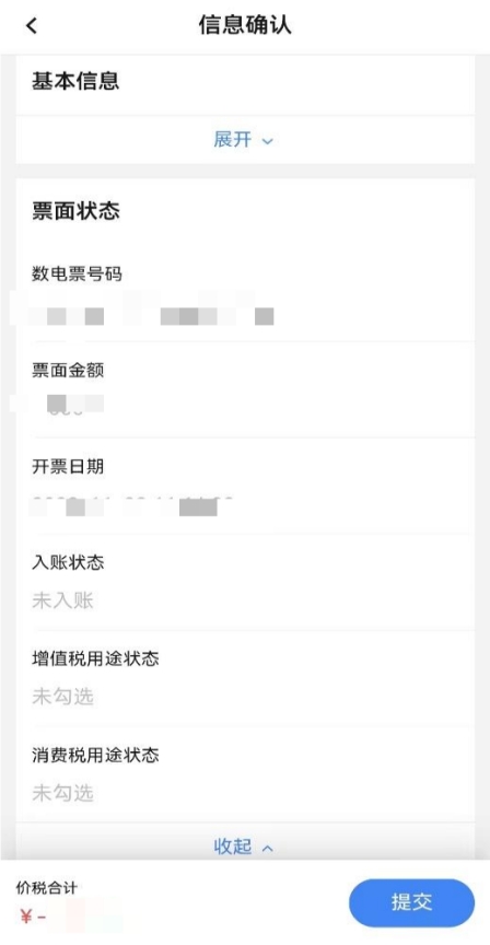 3.7 若蓝字发票“增值税用途标签”、“发票入账状态标签”均为空时系统带出蓝字发票商品明细,不允许修改商品明细且只允许全额红冲。