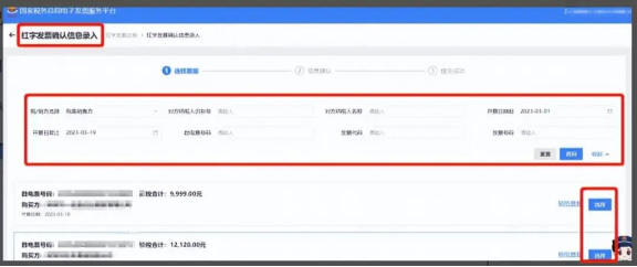 1、红字发票确认信息录入操作:纳税人在红字发票业务模块点击“红字发票确认信息录入”,进入红字发票确认信息录入界面。录入查询条件,点击【查询】,查询需要红冲的蓝字发票信息。在查询结果中点击“选择”后进入【红字发票确认信息录入】页面。点击【提交】即可。