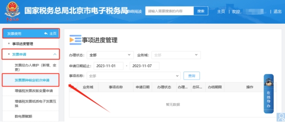 二、发票使用—发票申请—票种核定初次申请??樯昵胫街史⑵逼敝帧?/p>