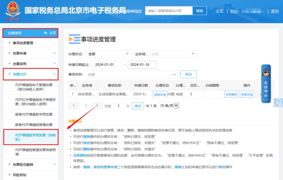 在电子税务局上如何打印代开增值税专用发票(自助机)的清单?