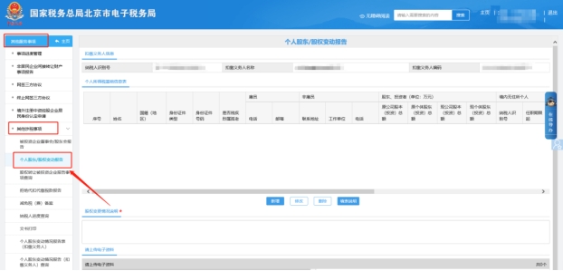 三、税费申报及缴纳—个人股东变动情况报告表(扣缴义务人)录入。