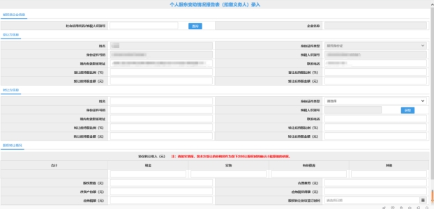 四、个人股东变动情况报告表(扣缴义务人)录入页面继续填写提交即可。