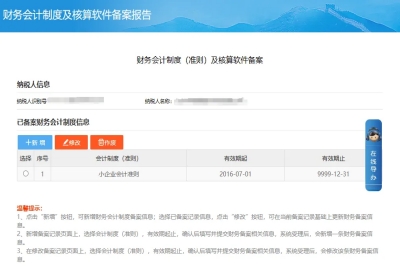 二、综合信息报告—制度信息报告—财务会计制度及核算软件备案报告。