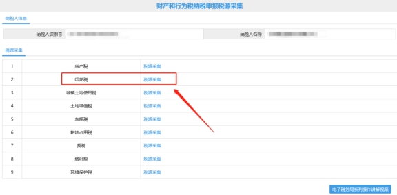 四、点击“印花税”税种后方“税源采集”按钮进入查询信息并修改。
