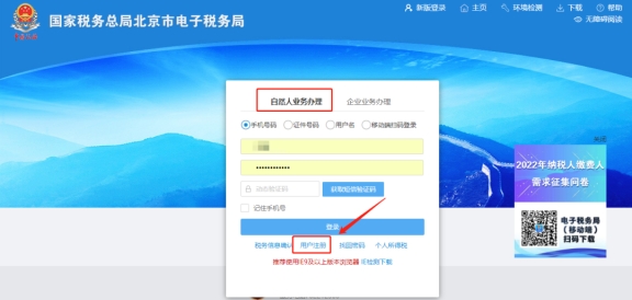 一、点击自然人业务下方【用户注册】。