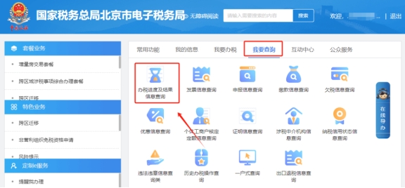 一、我要查询—办税进度及结果信息查询。