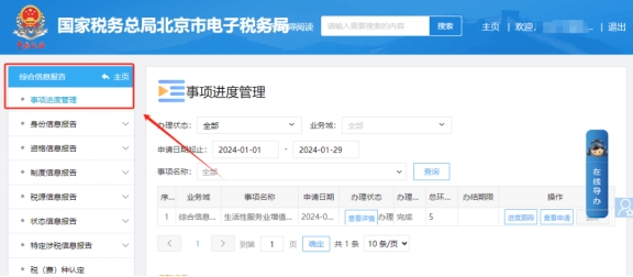 二、综合信息报告—事项进度管理模块查询受理结果,若审核通过。