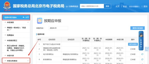 二、税费申报及缴纳—申报台账查询,查询即可。