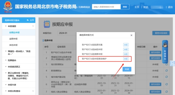 三、再选择【财产和行为税申报查询维护】,点击右方的申报。