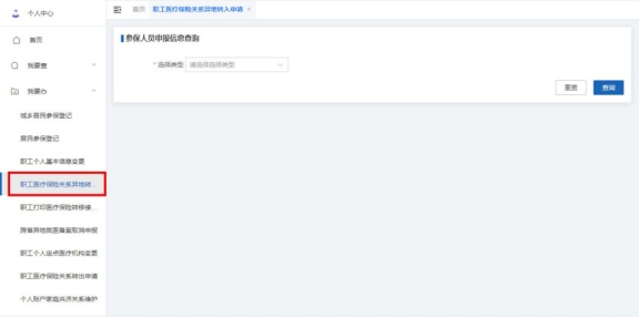 (2)网上申请办理:申请人打开“北京医保公共服务平台”,单位在“单位登录”??榈锹?个人在“个人登录”??榈锹?。选择“网上经办”—“职工医疗保险关系异地转入申请”???个人在“我要办”—“职工医疗保险关系异地转入申请”),选择转出地,申请转入业务。