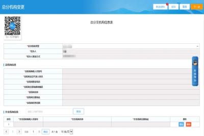 三、总分支机构信息表页面,企业如果是总公司,填写下一级机构信息是分公司的信息,上一级机构信息不需要填写(企业如果是分公司,填写上一级机构信息是总公司信息,下一级机构信息不需要填写)。