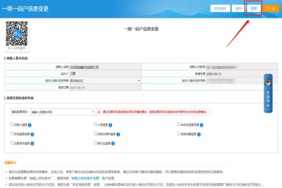 三、一照一码户信息变更页面,点击右上角的“重置”重新填写需要变更的信息提交申请即可。