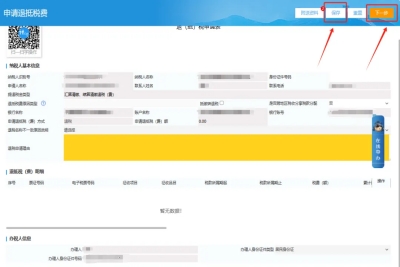 情况一: 如您进入后提示“尊敬的纳税人您好,您存在可退税的金额为0.00元多缴税(费),请您核实”,请您点击“确定”,然后在“退抵税(费)明细”栏目点击“多缴查询”按钮,查到后勾选您需要退的税,填写黄色必填项,上传必报附件,点击【保存】一【下一步】,提交后等待税务机关受理即可。