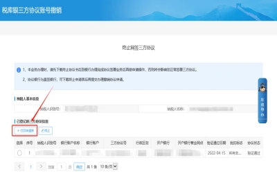 三、选择需要终止的协议—点击“打印申请表” — 打印出协议终止书留存;再次选择要终止的信息 — 点击“终止” — 协议状态显示“终止协议”则终止成功;(如没有签订三方协议或三方已经终止了,不用操作这一步)