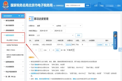 1.终止三方协议:【我要办税】—【综合信息报告】 — 【制度信息报告】 — 【终止网签三方协议】 — 选择需要终止的协议 — 点击“打印申请表” — 打印出协议终止书留存;再次选择要终止的信息 — 点击“终止” — 协议状态显示“终止协议”则终止成功;(如没有签订三方协议或三方已经终止了,不用操作这一步)