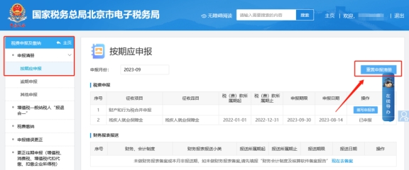 二、税费申报及缴纳—申报清册—按期应申报页面点击“重置申报清册”,然后进入增值税申报表内在主表页面点击右上角的“重置”,刷新成功后重新填写申报即可。
