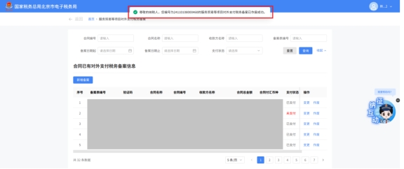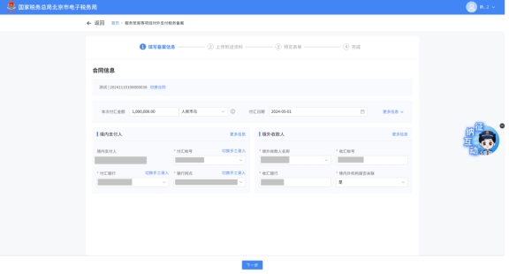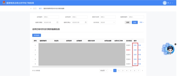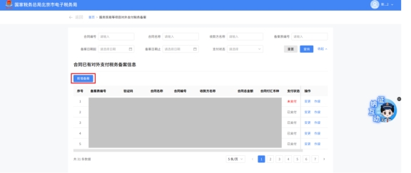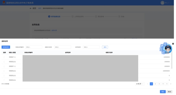 (2)选择需要进行对外支付税务备案的合同;无合同的情况下可以点击“新增合同”按钮,进行合同新增;