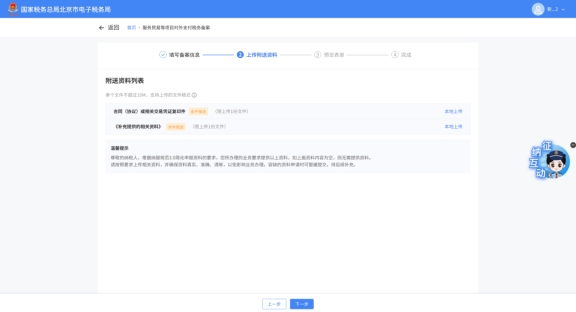 (4)上传附送资料后,点击“下一步”;