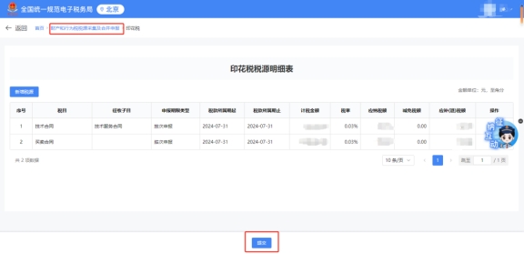 如果您需要更正申报表,可以点击【更正】,页面跳转至财产和行为税税源采集及合并申报界面,填报无误后点击【提交】即完成申报更正。
