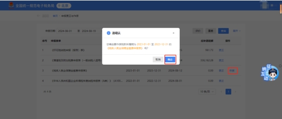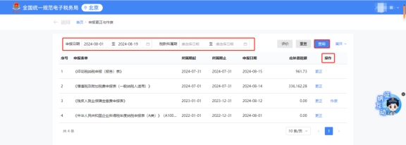 您可通过右侧“操作”列提供的【更正】、【作废】完成对应申报表单的相关操作。