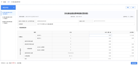 2)缴费人可对《文化事业建设费申报表(广告业)》及《应税服务减除项目清单(广告业)》进行依次填写和修改;