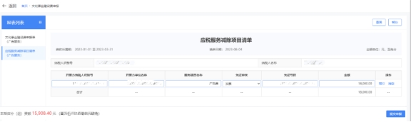 2)确认数据是否正确,并进行补充,点击“编辑扣除项”可填写《应税服务减除项目清单》。
