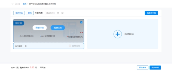 (1)自动带出本期应申报的所有税种卡片,纳税人可以自行勾选单个或多个税种进行申报。