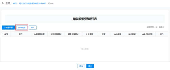 (4)点击卡片上的【税源采集】,系统跳转到印花税税源明细表界面。