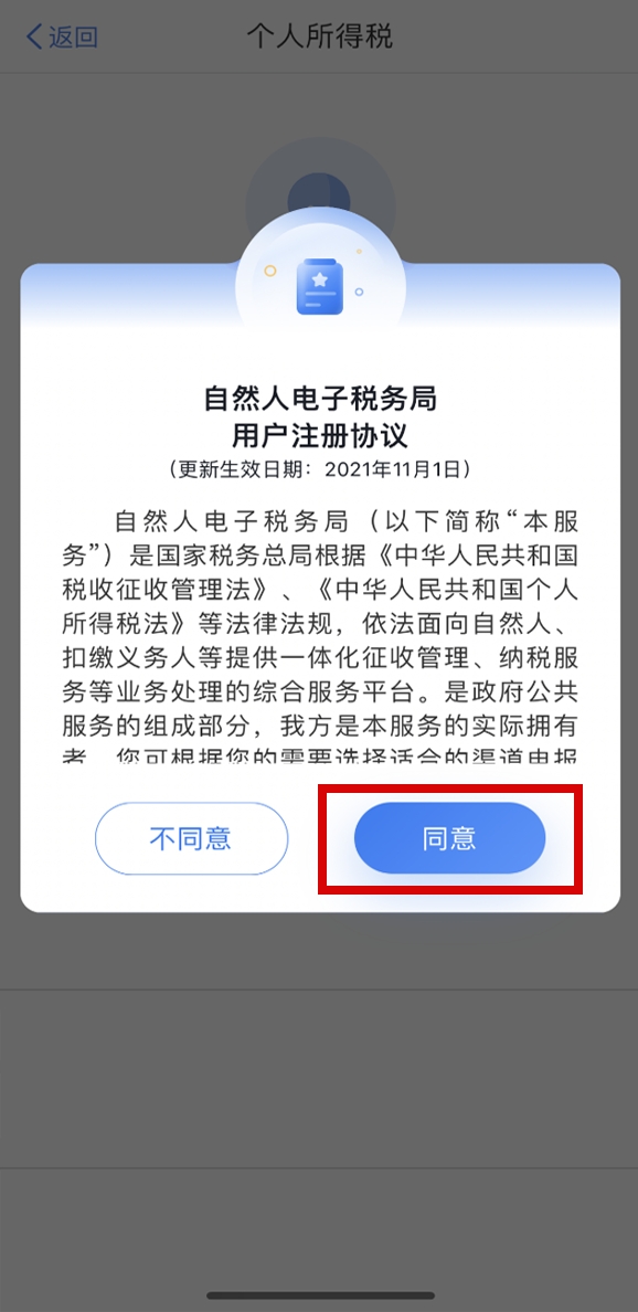 打开个人所得税APP,点击右下角【我的】-【注册/登录】,注册方式选择【人脸识别认证注册】,点击【同意】自然人电子税务局用户注册协议。
