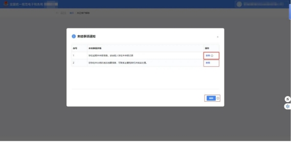 纳税人存在未办结事项,系统弹出提示框显示您未办结事项详情。