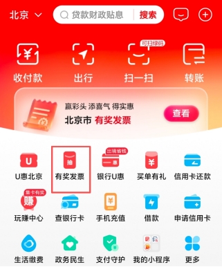 银联云闪付:打开APP先把左上角定位切到北京,首页直接就能看到「有奖发票」活动专区,点进去按提示上传就行