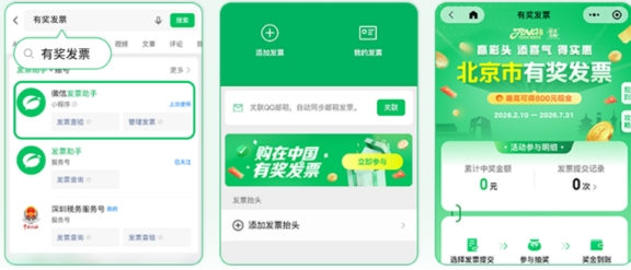 微信支付:搜「有奖发票」,点微信发票助手进入活动页,手动选北京定位就行