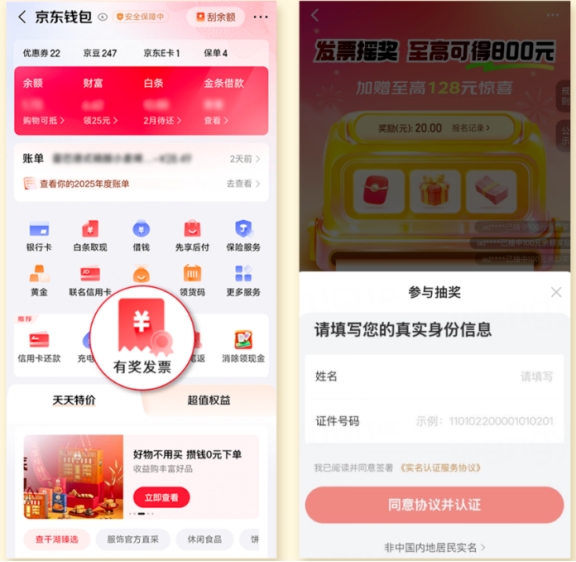 京东支付:打开京东APP点「我的」-「钱包」-「有奖发票」专区,先完成实名认证再上传发票